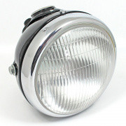 6 1/2" headlamp unit with black body and chrome rim, complete with OFF/L/H switch panel, ammeter and wire feed cover, equivalent to the Lucas MU42 model. The MU42 lamp is similar to the earlier...