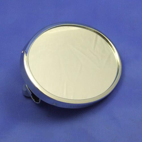 Polished stainless steel clip-on mirror with circular CONVEX glass, 102mm diameter.