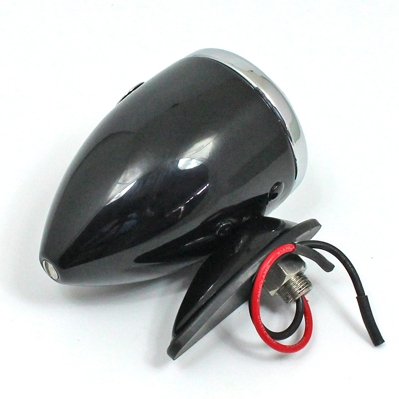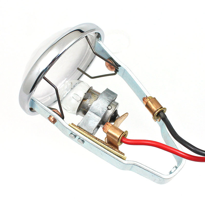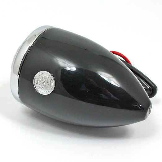 Vintage 'Toby' side lamp equivalent to Lucas part number 1142. Originally fitted to many quality cars including Rolls-Royce and Bentley. All brass construction with gloss BLACK finish to lamp body and plinth, with a CHROME rim. Takes bulb part numbers B205 (6V) or B207 (12V) - 12V, 5W bulb supplied as standard. Rim, lens, bulb holder arrangement as original lamp.