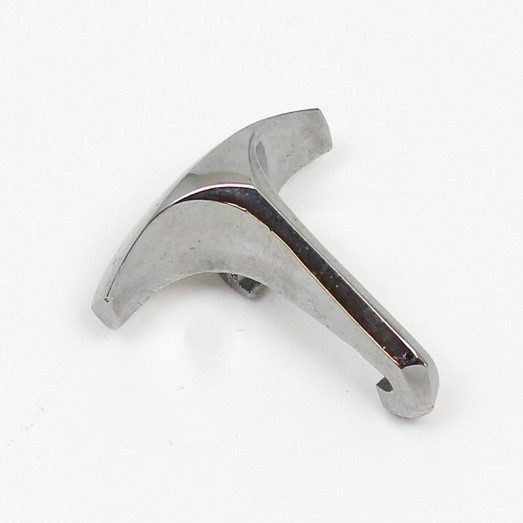 Chromium plated rim catch, for Lucas type head lamps, short style, overall dimensions 31mm long x 27mm wide, equivalent to original Lucas part number 509936. Use with 'spectacle' wire spring clip - our part number 864.