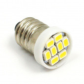 Bright White 8 x 2835 SMD 50 Lumen LED 12V lamp with flat LED cluster for single direction light applications. MES E10 base. Brighter than original c5W bulbs. Compatible with negative only earth systems. Very low current draw - over 75% less than incandescent and halogen bulbs so great for low powered electrical systems. 6000K bright, white colour temperature. 12mm maximum diameter, 19mm total bulb height.