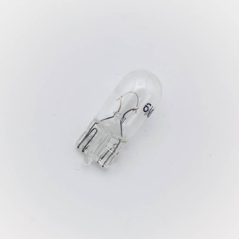 6V bulb, 0.2A, T10 wedge base W2.1 x 9.5D. 10mm diameter clear tubular glass.