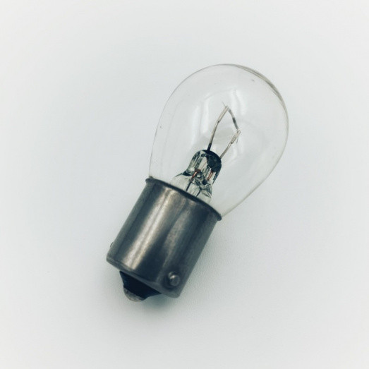 12V Clear bulb rated at 21W, 25mm diameter clear glass bulb. BAU15S Single contact base. Single transverse filament. E marked.