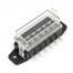 6-Way Fuse Box. Standard blade fuse box complete with transparent cover and gasket. The cable connections are made using the 6.3mm male blade/Lucar terminals which are fitted on the sides of the fuse box. 36 x 100 x 29mm
