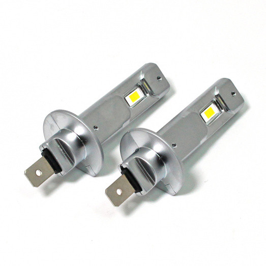 High quality LED upgrade with aluminium heatsink for H1 lamps with the P14.5S base. A PAIR of V30 series lamps with CSP3570 LEDs, 4500LM luminous flux. Replaces a standard H1 bulb in the same size envelope. Flexible application - 11 to 48V DC input, allowing 12V and 24V application. NEGATIVE EARTH ONLY!  One high power LED array on each side of the lamp body. In testing, these high quality lamps gave a classic white light when installed in a 5 3/4" spot lamp, while still brighter than a standard 55W H1 bulb. SOLD AS A PAIR