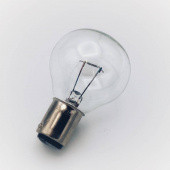 Incandescent bulbs with SBC/BA15D double contact base, single filament and power outputs 24W and above. Head or spot lamp application. 38mm globe diameter with 15mm cap diameter. Equal locating pins on cap. Available in a range of input voltages and power outputs. Single filament with a double contact base earths through one of the contact connections, rather than via the bulb cap as with a single contact bases.